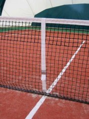 • Komplet składa się z dwóch słupków, jeden z zewnętrznym naciągiem śrubowym siatki, drugi z elementami zaczepowymi siatki, oraz dwóch tulei z dekielkami.;